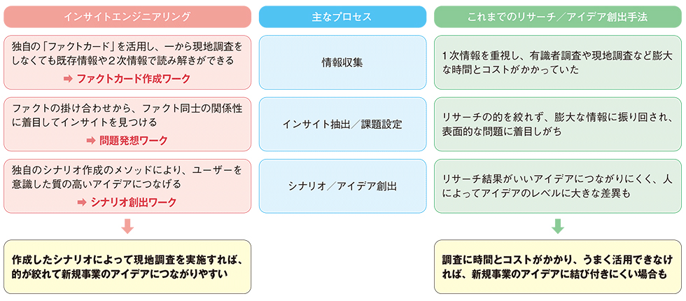 「インサイトエンジニアリング」と、これまでのリサーチ/アイデア創出手法との違い