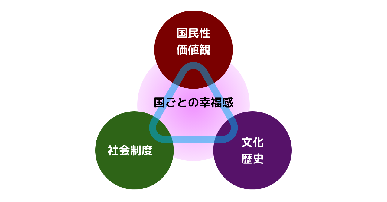 「幸福感は、国民性や価値観、歴史・文化、社会制度の相関に由来するのではないか?」