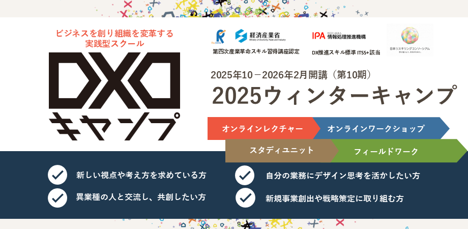 経済産業省のReスキル講座に認定されている高度デザイン人材育成スクール「DXDキャンプ」では、