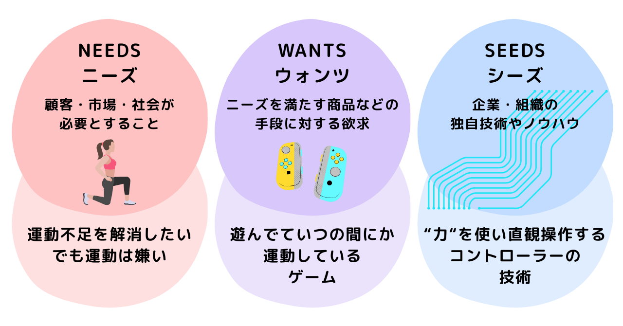 ニーズ・ウォンツ・シーズの関係性(筆者作図)