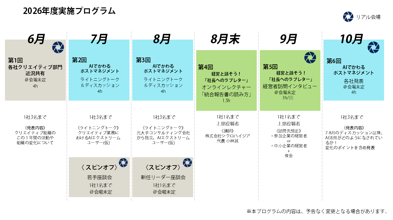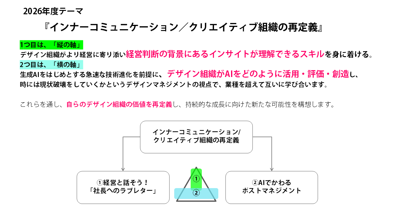 2026年度は、2025年度の議論を土台に、クリエイティブ組織が経営・事業にどう向き合うのかを、より本質的に問い直します。