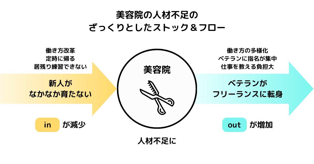 ・だが美容院にとっては、その人と一緒にその人についているお客さんもいなくなる、業務委託なので新人教育まで課せられない、